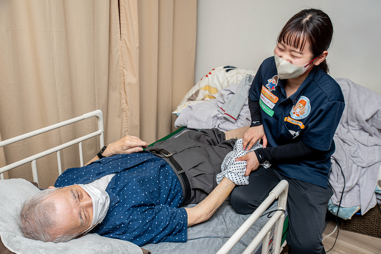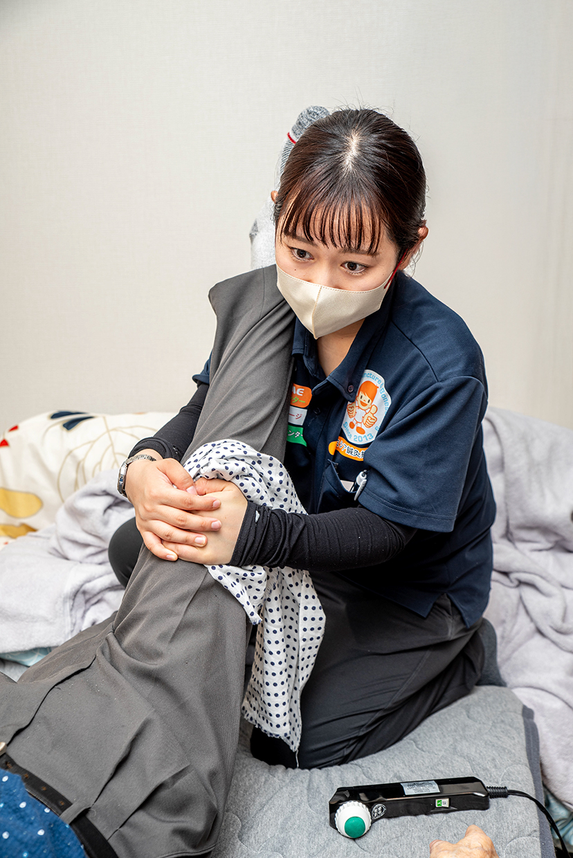 週3回の訪問マッサージ。 その日の体調に合わせて力加減を変え、ちょっとした雑談にも耳を傾けてくれる。
